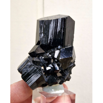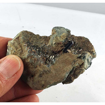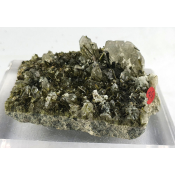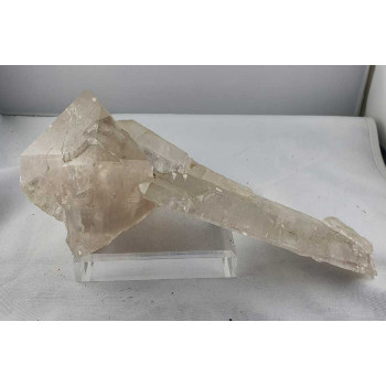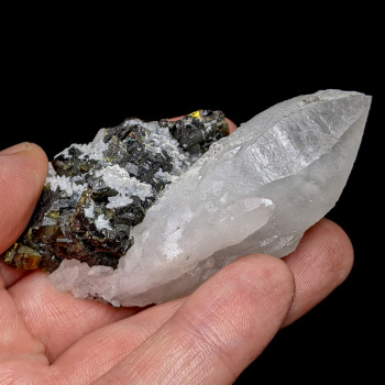 Natural presentation for this quartz carried by sphalerite var. cleophane.Typical coin from the Madan mining sector, Smolyan province, Bulgaria.It measures 7.4 cm long by 4 cm high and 2.8 cm thick.Its weight is 72 grams.Reference: 0639 Additional photos and online order on the DGminerals...