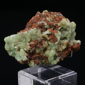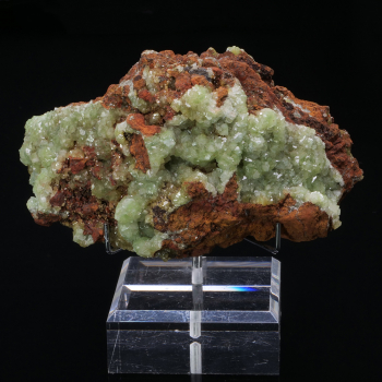 Many crystals of Cuproadamite, Adamite rich in Copper, presenting a superb apple green color. On Limonite, their colour stands out even more. Specimen from the famous Ojuela mine in Mexico.10,30 x 6,60 x 5,50 cmReference : 4039