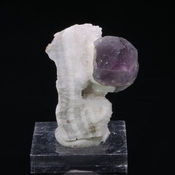 Two large cuboctahedron crystals of fluorite on quartz from the Xia Yang mine in China. Other smaller crystals are present in the Quartz matrix on the side. Fluorite ranges from purple to green and yellow. Very beautiful specimen.6,40 x 5,40 x 4,40 cmReference : 4045