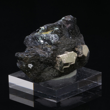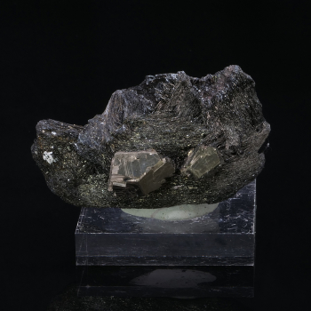 Superb gloss and quality for this specimen from Rio Marina in Italy. It has two large crystals of pyrite, polished and well formed on Hematite matrix in thin and shiny lamellae.7 x 3,60 x 4,30 cmReference : 4047