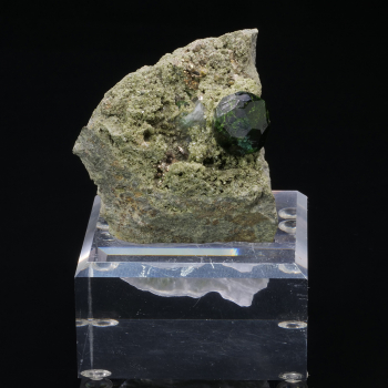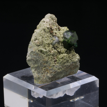 Demantoid Garnet green intense bottle of nice size, associated with pyrite, on matrix from Takab in Iran. This specimen is sold with its custom base made by us.7 x 5,50 x 3,70 cmReference : 4054