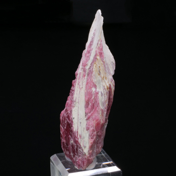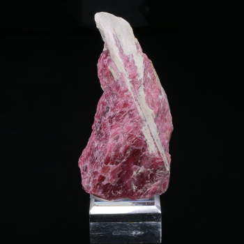 Rare specimen with an intense dark pink rhodonite crystal, crossed by the amphibole Cummingtonite, fibrous. Strong presence of cummingtonite on the back of the piece. Rhodonite from the Morro da Mina mine in Brazil.10,60 x 4,80 x 3,30 cmReference : 4056