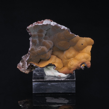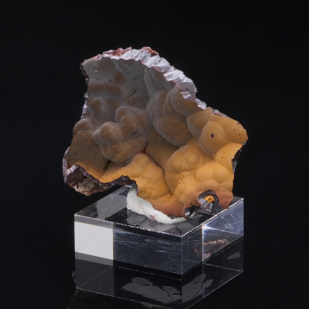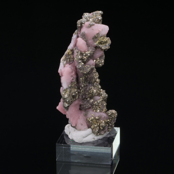 Superb specimen of Rhodochrosite pseudomorphosed after Calcite, that is to say that Rhodochrosite replaced Calcite, associated with Pyrite. This piece comes from the Oppu mine in Japan, a locality known worldwide for having superb and rare specimens of Rhodochrosite. This one is very impressive...