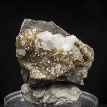 Very aesthetic small piece composed of quartz diamond and two generations of calcite. It comes from a septaria Limestone.4,4 x 3,6 x 3 cmReference : 0722