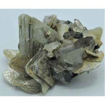 Beautiful set with large blades muscovite, black tourmalines completed, smoked quartz, small garnets, and a white feldspar: very aesthetic!6,5 x 5 x 4 cm0056-CD