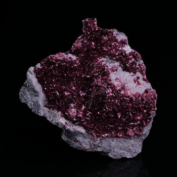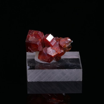 Superb specimen with intense red crystals of proustite associated with metal black galena crystals. Beautiful color contrast, the largest proustite crystal measures 2 mm. Very nice collector with an incredible shine.6,15 x 5,20 x 3,40 cmReference : 0799