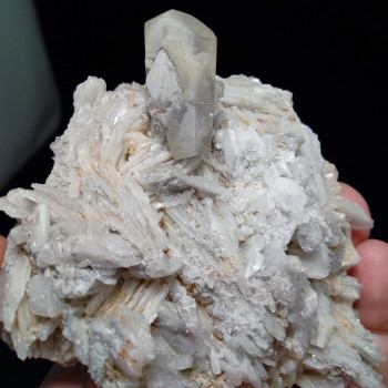 Astonishing mounting on Barite Calcite. Scalenohedral Calcite twinned, partially covered by a biterminated rhombohedron, and the whole is embedded in crystals Baryte!9,5 x 8,5 x 5 cm0044-SMCLS