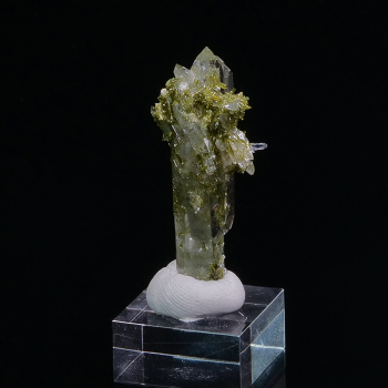 Octahedron Fluorite green covered with Quartz. Specimen almost floating cubic Fluorite recrystallization back.9 x 9,5 x 4,5 cmReference : 0078