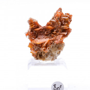 Very beautiful dark orange thomsonite having on the surface a micro needle crystallization, combined with white and shiny stobite crystals resting on a matrix of small stilbites .Specimen very aesthetic.8 x 6 cmReference : 0214