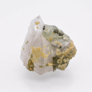Superb Calcite honey yellow to white center blue Fluorite. This piece is part of a small pouch and parts of Fluorite is very rare for the locality! Specimen with a beautiful aesthetic and pretty colors.5,70 x 4,50 x 3,60 cmReference : 0357