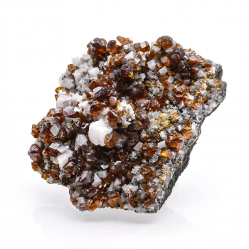 Numerous translucent sphalerite (blende) crystals, amber in color, particularly brilliant and of honorable size (4 mm on average and up to 7 mm for the largest) for this small deposit of the 1970s having existed only through a few mining holes. The presence of white dolomite contrasts perfectly...