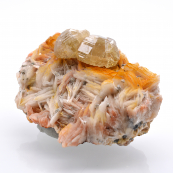 Rare mineral, crystal of intense orange seal associated with analcia crystals, all on Albite. The crystal is finished, and has a very beautiful color.5,55 x 4 x 3,65 cmReference : 0793