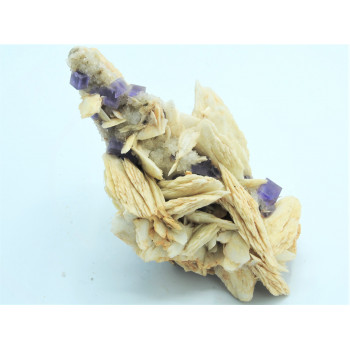 Beautiful floating white barite blades associated with cubic fluorite violet, very airy.15 x 8 x 7 cm0093-CD