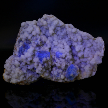 Very rare specimen of Krohnkite,blue, associated with Blodite crystals, white, transparent. This is rare copper sulfates, and rarely seen in collections. In backlight, you can see the purity of the specimen, it looks like a piece of ice without impurity. This piece from Mejillones in Chile,...