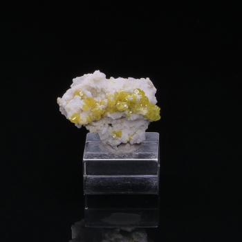 Large group of prismatic crystals of yellow and green Vesuvianite from the famous Jeffrey Mine in Canada. The crystals have a beautiful color and are well formed.5,40 x 5,40 x 2,30 cmReference : 2285