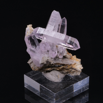 Clusters of very well formed yellow prismatic Adamite crystals associated with black and brown Goethite crystals, all on Limonite matrix, from the famous Ojuela Mine in Mexico.5,90 x 5,40 x 2,62 cmReference : 2283