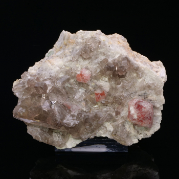 Half polished agate geode with a red periphery and a cavity showing crystallization of quartz. This quartz is accompanied by a second metallic mineral, perhaps hematite.This piece comes from Morocco.It measures 7.5 cm long by 7 cm wide and 3.1 cm thick.Its weight is 215 grams.Reference:...