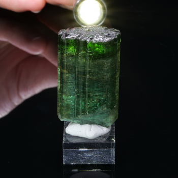 Fine, colorless, shiny stalactite calcite. 4,5 x 0,5 x 0,3 cm. Reference : 3080-LM2T