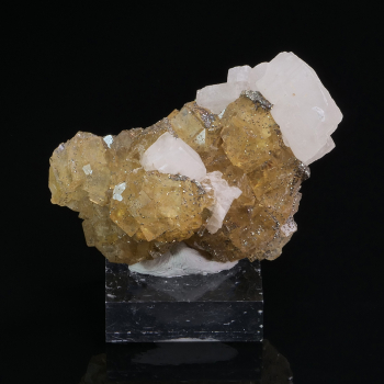 Sample combining a plating of pale pink cobaltocalcite with crystallizations of malachite, white dolomite, as well as a covering of chrysocolla (probable).It comes from the Musonoi mine, Kolwezi, Lualaba, Congo.Specimen measuring 7.2 cm long by 6.3 cm wide and 1.9 cm at the thickest.Its weight is...