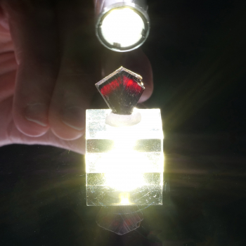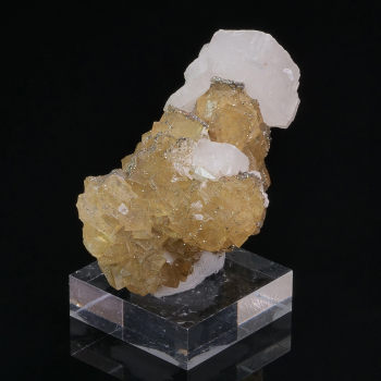 Green brown andradite garnet on top of quartz crystals, crystals with a strange colored pattern.This sample is from the Bor quarry, Dalnegorsk, Primorsky Krai, Russia.It measures 4.1 cm high, 4.8 cm wide and 2.6 cm thick.Its weight is 63 grams.(Measurements off base)Old collectionReference:...