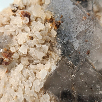 Fluorite with rare crystals in green and purple curved octahedra, the main one of which, incomplete, exceeds 4 cm in width.It comes from the mine of La Barre (seam of the martinèche) Saint Jacques d'Ambur, Auvergne, in the former mining district of Pontgibaud.This sample measures 13.4 cm high,...