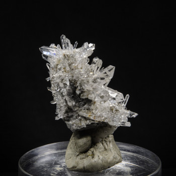 This is the story of an unexpected alpine quartz fissure in a field or usually found rather quartz window. The crack will be worked with more or less difficulty repeatedly until spring 2020. The quartz are not very big but very clear, regularly presenting périmorphose around Calcite missing or...