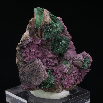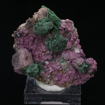 Cobaltoan Calcite in beautiful intense pink crystals associated with native Copper on the top of the piece which is rare to find. Beautiful association from the famous Mashamba West mine in DR Congo.6,40 x 5,10 x 3,70 cmReference : 4380