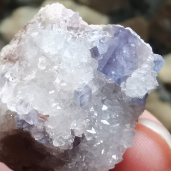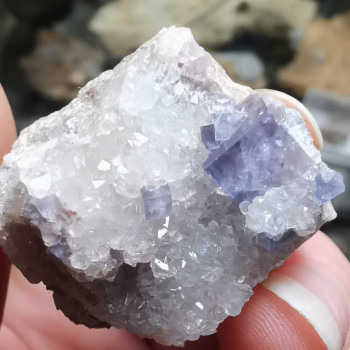 Fluorite and quartz of Valzergues, Aveyron12, France 2.9 x 2.6 x 2.5 cmReference : 4VQ