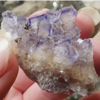 Fluorite from the La Barre mine, Puy de dome 63, France. 2.7 x 2.6 x 1.5 cmReference :