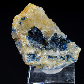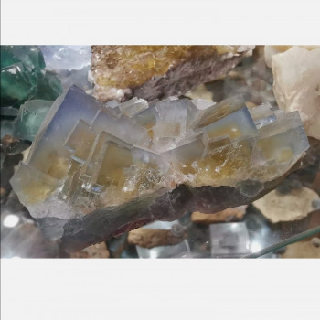 Blue fluorite from the Marsanges mine, Haute-Loire 43, France. Largest edge 3.5cm.6 x 5.5 x 3 cmReference :