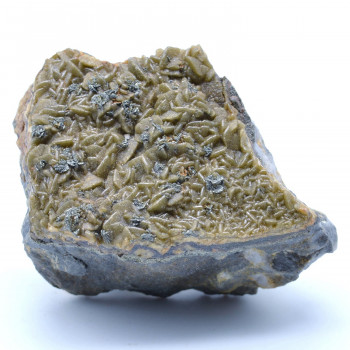 Piece showing on gangue a first deposit of sulfur covered by a partially crystallized brown celestite.It comes from the Maschów Mine, Tarnobrzeg County, Subcarpathian Voivodeship, Poland.This sample of good size measures 17.4 cm long by 8.7 cm wide and 8.5 cm high.Its weight is 815...