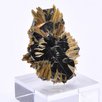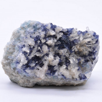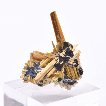 Very original small piece with yellow mimetite, cerussite and a light dusting of duftite, from Tsumeb, Namibia,6,2 cm.Reference : 0352