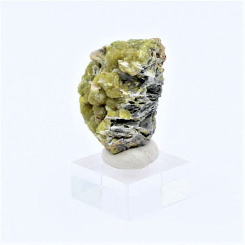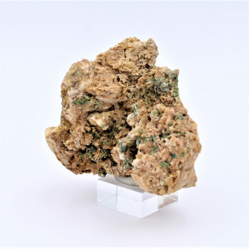 Mexican sample of mottramite partially covered with brown calcite crystals, all covering both sides of a limonite matrix.This specimen comes from the Ojuela mine, Mapimi, Durango, Mexico.It measures 14.3 cm long by 10.6 cm wide and 3.5 cm thick.It weighs 432 grams.Additional photos and order...