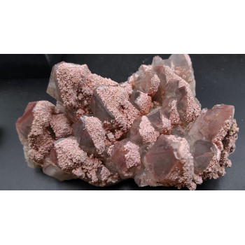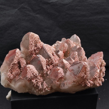 Very beautiful group of quartz, one of the faces of the crystals is covered with a crust of pink calcite.15 x 10 x 7 cmReference : 0066