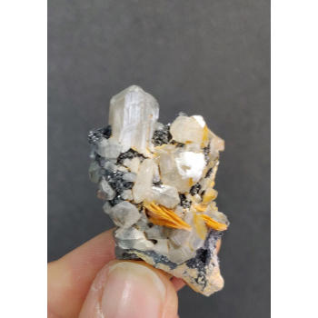Calcite de Saint Péray – Ardèche (07) - FranceMinéraux : Calcite + baryte + chalcopyrite + fluorineDimension (cm - L x l x H) : 7 x 5 x 5 cm Poids : 193 grammesPrix : 30 € HFPInformations complémentaires : Jolie pièce de calcite de Saint Péray, presque flottante, composée de multiples...