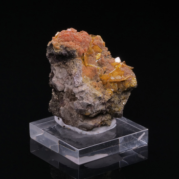 Very nice piece of Wulfenite with crystal clear and orange associated with darker and opaque orange Mimetite.4,70 x 4,10 x 3,80 cmReference : 3035