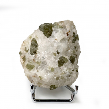 Piece showing green diopside crystals in a quartz gangue.This sample comes from Badakhshan in Afghanistan.It measures 5.2 cm long by 4.3 cm wide and 2.8 cm at its thickest.Its weight is 71 grams.Additional photos and order online on the DGmineraux...