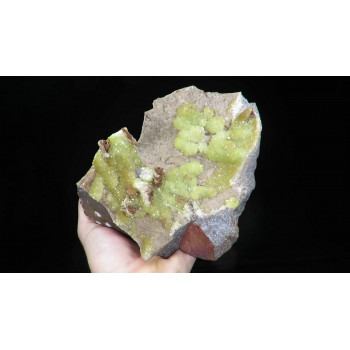 Sublime Opal Hyalite botroyoidal forming like a crown on its andesite matrix. The quality of the crystals is splendid, they are gemstones, clear and very bright. Very strong reaction to UV for this variety of Opal.5,75 x 4,50 x 3,30 cmReference : 3866