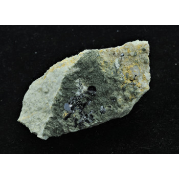 Very original small piece with yellow mimetite, cerussite and a light dusting of duftite, from Tsumeb, Namibia,6,2 cm.Reference : 0352