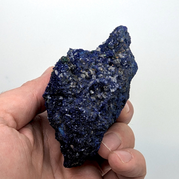 Sample of dark blue azurite, partially crystallized, carrying some white cerussite crystals.It comes from the Mashamba mine, Katanga, Republic of Congo.Specimen measuring 8.2 cm long by 6.7 cm wide and 4.5 cm at its thickest.Its weight is 242 grams.Additional photos and order online on the...