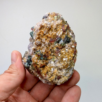 Sublime color palette for this Fluorite from the Okorusu mine in Namibia. The crystals are of all colors: purple, green, yellow, blue. Superb glossy specimen.6,80 x 4,50 x 3,40 cmReference : 3480