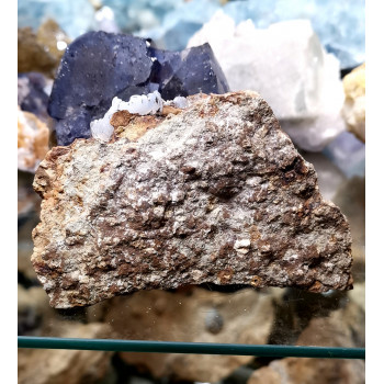 Hematoid quartz and baryte on fluorite, from the Argentolle mine in the Morvan, Saône et Loire, very original little sample !7 x 5 x 3,5 cm.Reference : 0239