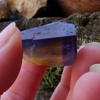 Small zoned crystal with blue heart from the tiny nearby occurrence of Puy Saint Gulmier (single pocket discovered in 2016). 1,7 x 1,4 cm. Reference : 0224-RuFo
