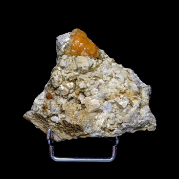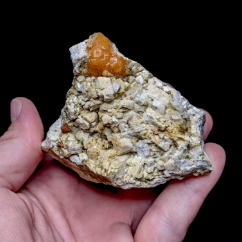 Sample bearing orange, spherical stellerite crystals on beige orthoclase crystals.This specimen comes from Tatatila in the state of Veracruz in Mexico.It measures 5.9 cm high by 7 cm wide and 5.9 cm at its thickest.Its weight is 268 grams.Reference: 1503Additional photos and online ordering on...