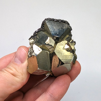 Small shiny pyrite with octahedral crystals and presence of black sphalerite.It comes from the Huaron mines in the Pasco province of Peru.This piece measures 5.1 cm long by 4.2 cm wide and 2.9 cm high.It weighs 146 grams.Additional photos and online ordering on the DGminéraux...