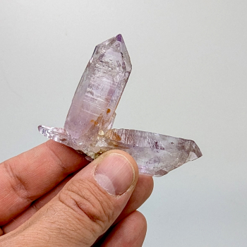 Pair of transparent and brilliant amethyst crystals, one of which has a double ending, one fenestrated and the other very fine.This piece comes from Las Vigas, State of Vera Cruz, Mexico.It measures 5.5 cm long (length of the crystals) and 1.5 cm thick.Its weight is 37 grams.Additional photos and...