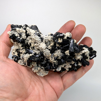 Piece rich in centimeter-sized crystals terminated with black tourmaline on a feldspar matrix.This sample comes from the Erongo region in Namibia.It measures 10.9 cm long by 6.2 cm high and 4 cm thick.Its weight is 306 grams.Additional photos and order online on the DGmineraux...