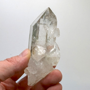 Clear quartz with chlorite inclusions. Imperfect piece but with a lot of charm.It comes from Corinto in the state of Minas Gerais in Brazil.This quartz measures 10.7 cm long by 6.2 cm at its widest and 3.4 cm at its thickest.Its weight is 214 grams.Additional photos and order online on the...