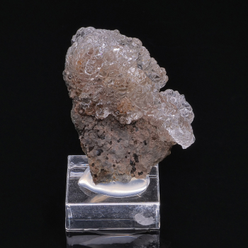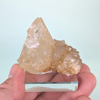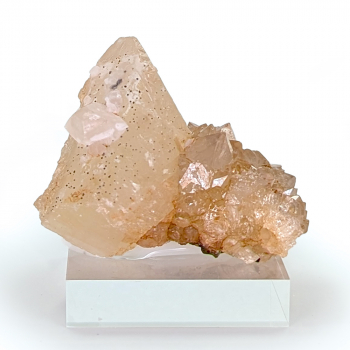 A charming piece combining a calcite crystal with quartz crystals.This piece comes from Russia.This specimen measures 5.1 x 4.3 x 3.8 cm.This specimen weighs 64 grams.Measurements excluding the base.Additional photos and online ordering on the DGmineraux...