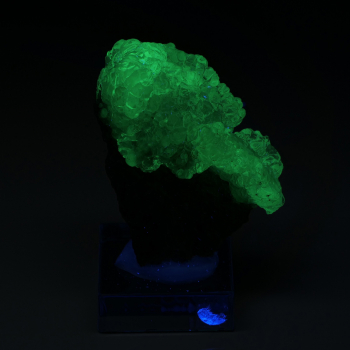 These pieces from Zogno require a light by backlight to be able to see the color. If you use a cold light, the color will come out dark blue, or a warm light the color will be dark purple. These specimens also have the particularity of being fluorescent, but by flash fluorescence. That is to say...